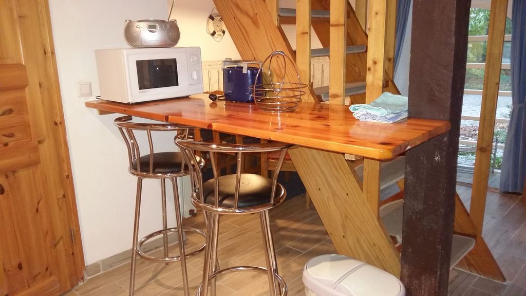 70 qm, max. 6 Personen. Moderne Einbauküche mit Geschirrspülmaschine, Duschbad mit Handtuchheizung, 2 separate Schlafräume (1 mal Doppelbett, 1 Einzelbett, 1 Tandembett, Matratzenmaße siehe"Baumhaus"),